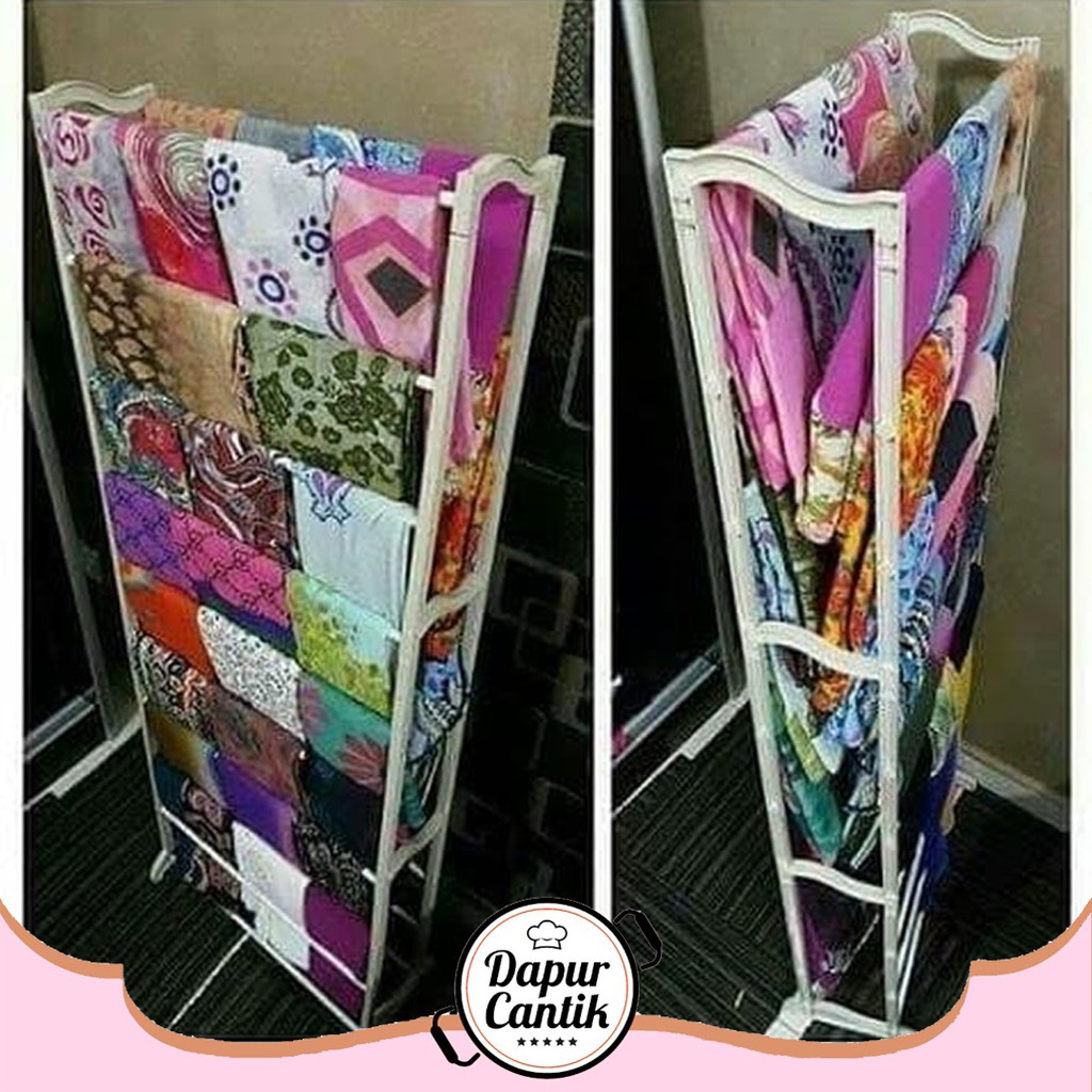 Deskripsi Rak Display Hijab Kerudung Selendang Serb KODE ASR Dapat membantu untuk menata Kerudung Hijab Selendang di rumah Rak Hijab memiliki 10 tingkat Rak Hijab mudah dibongkar dan dirakit Bagi Anda yang suka berpindah pindah tempat tinggal anak kosan kontrakan apartement atau rusun Kini Anda tidak perlu merasa repot lagi dimana menyimpan Hijab karena rak yang satu ini