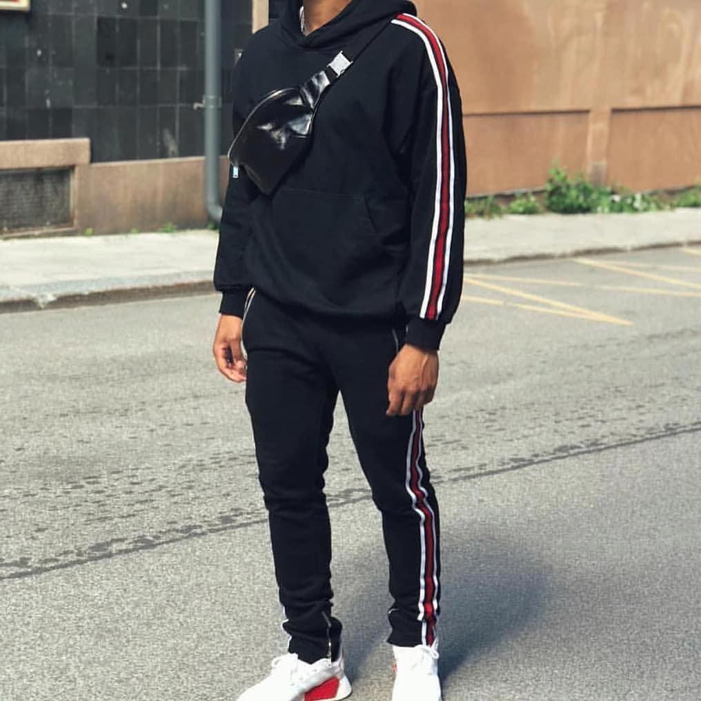 Hypebeast Streetwear Tracksuit Hitam List putih merah Sumber : shopee.co.id